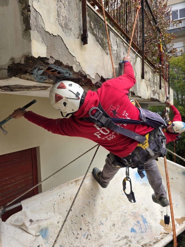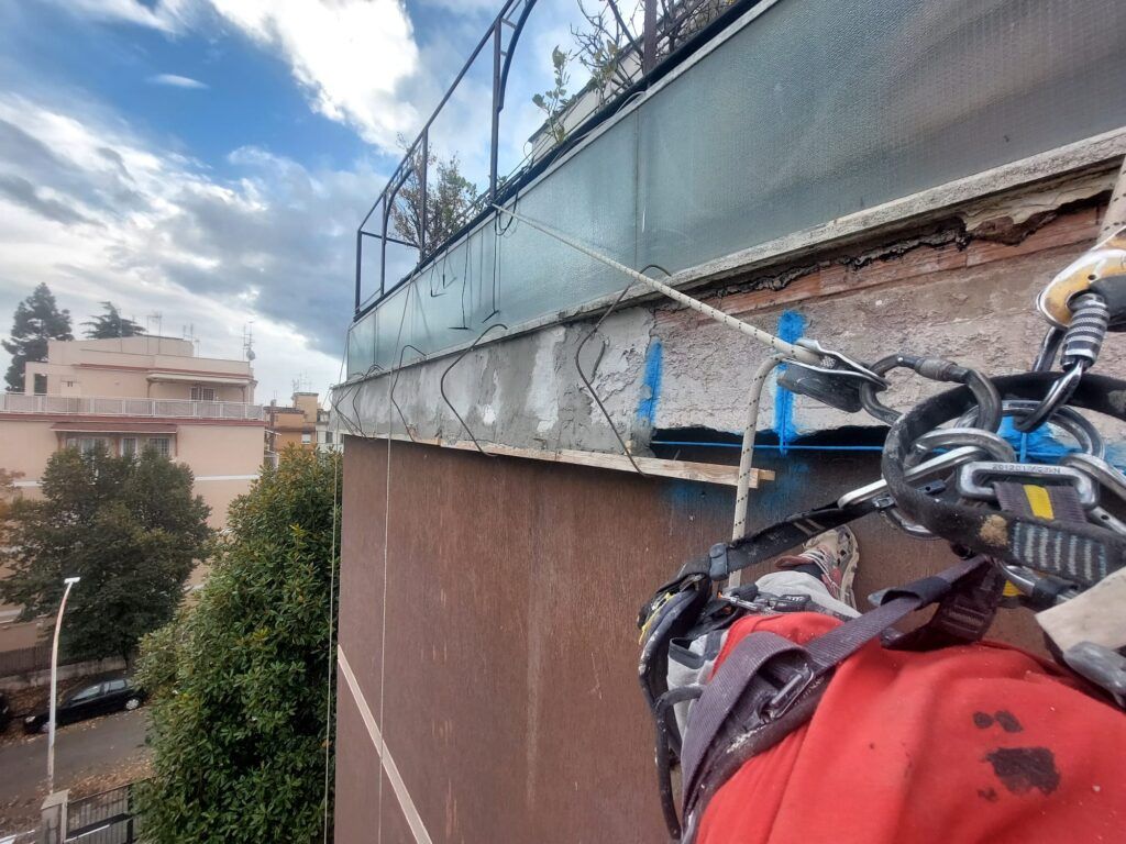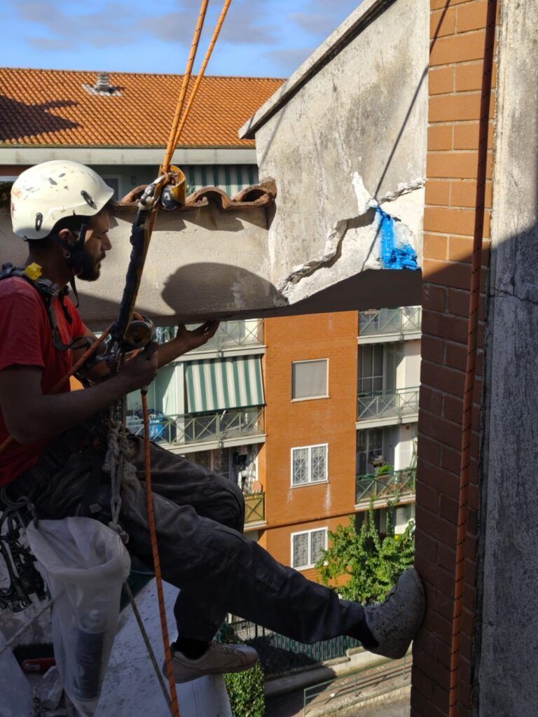 Messa in sicurezza cornicione pericolante Roma – Operatore Edilfuni su fune